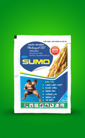 Hexaconazole ingredient is a broad-spectrum fungicide. it controls fungi through the mechanism of preventing the biosynthesis of Ergosterol (the substance that makes up the fungal cell membrane). Disease will be isolated and stop growing because they cannot form new cells. It is quickly absorbed by plant tissues, has strong translocation and drainage, so it can control fungal diseases quickly, effectively and for a long time by both prevention and treatment. Mekongvil 5SC is registered to prevent sheath blight disease