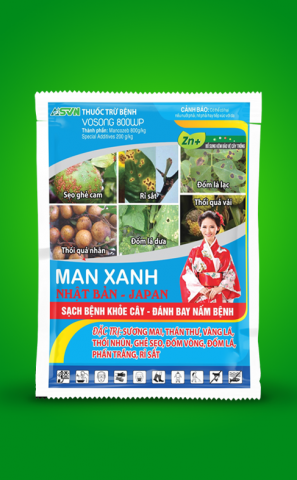 Mancozeb ingredient is a broad-spectrum insecticide with approaching and penetrating effects. It is high and long-lasting disease prevention efficiency such as: downy mildew, powdery mildew, fruit scar, anthracnose, ring spot, ... for many crops such as: oranges, tangerines, grapefruit, mango, litchi, longan, watermelon, eggplant pickles, potatoes, cabbage, cucumbers, beans, beans, onions, garlic, tobacco.